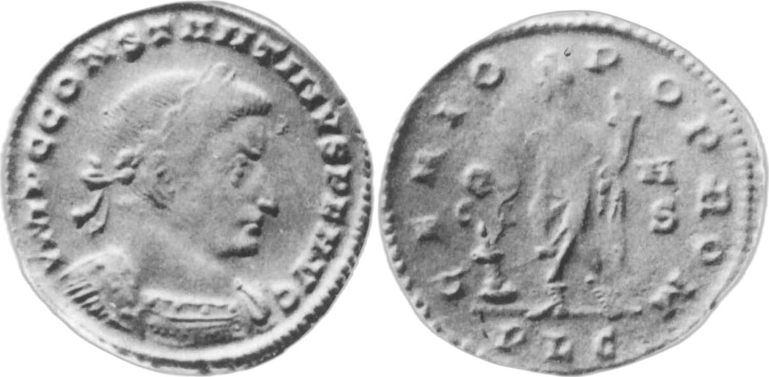 IMPCCONSTANTINVSPFAVG [IMP C CONSTANTINVS P F AVG]; bust r., laur., cuir. [B].