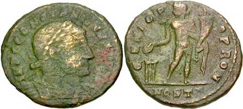 RIC VI, OSTIA [after 78], CONSTANTINE, UNLISTED REVERSE TYPE, BUST TYPE B, OFFICINA T