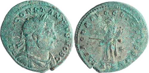 FL[VA]LCONSTANTIVSNOBC [FL VAL CONSTANTIVS NOB C]; bust r., laur., dr., cuir. [C].