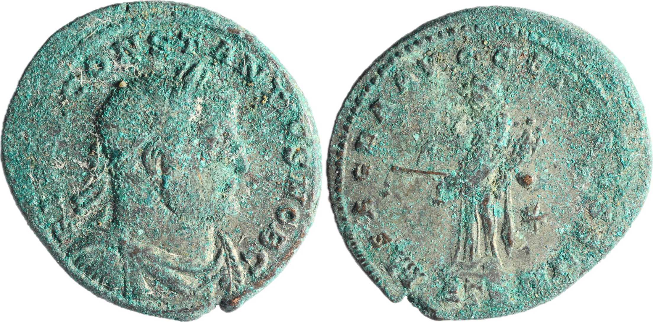 MSACRAAVGGETCAESSNN [M SACRA AVGG ET CAESS NN]; Moneta stg. l., r. holding scales, l. cornucopiae. Star in right field. ATR in exergue.