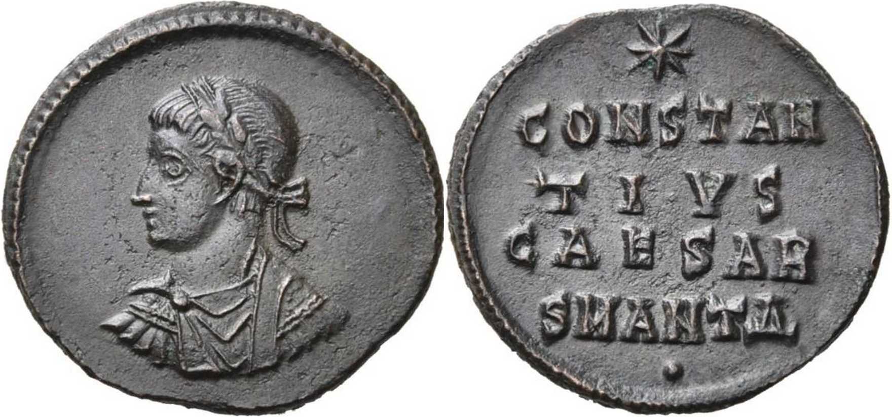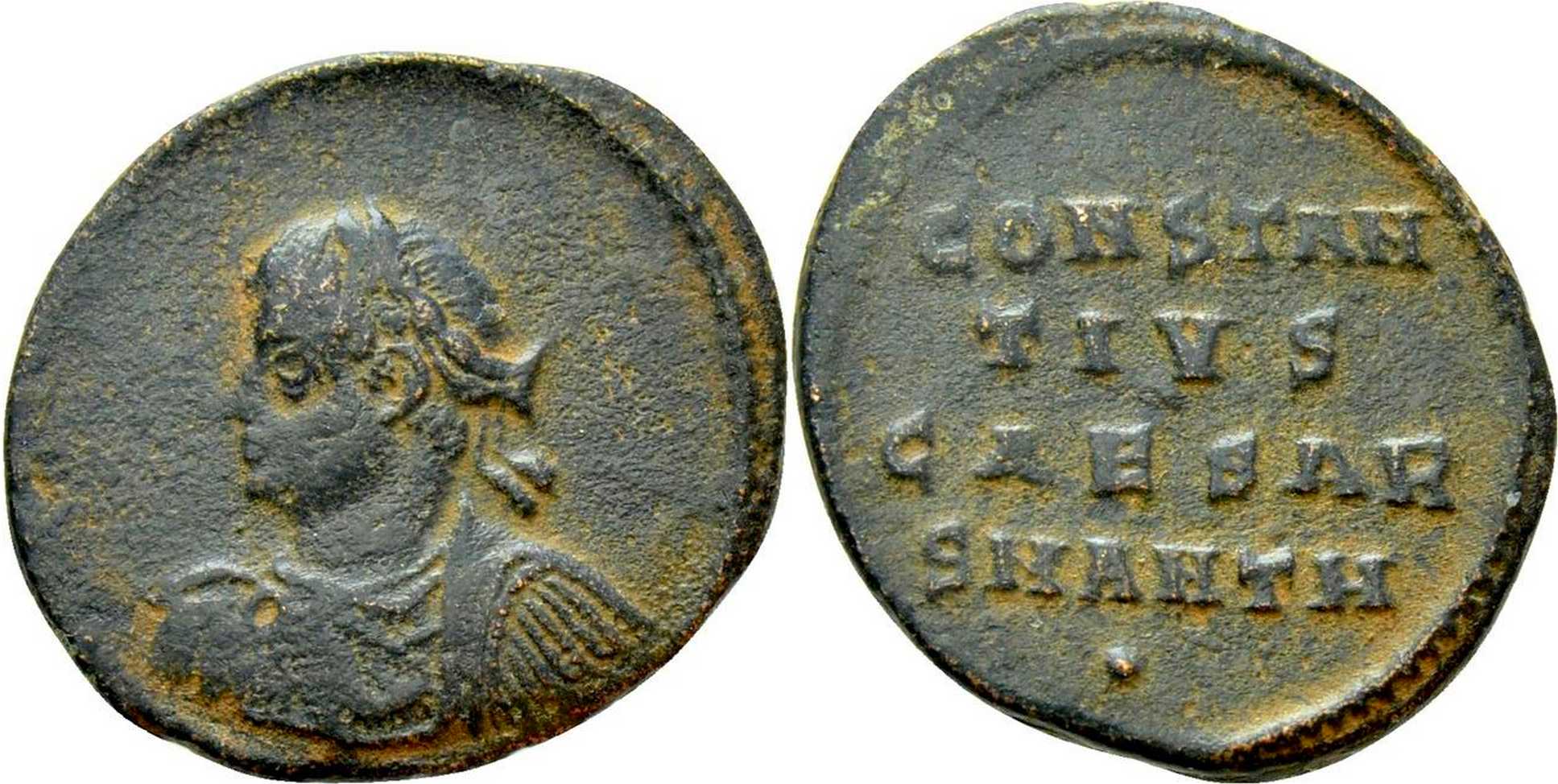 CONSTAN/TIVS/CAESAR in three lines; SMANTH in exergue. Dot under m.m.