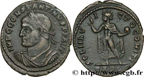 IMPCCONSTANTINVSPFAVG [IMP C CONSTANTINVS P F AVG]; bust l., laur., dr., cuir. [B4 l.].