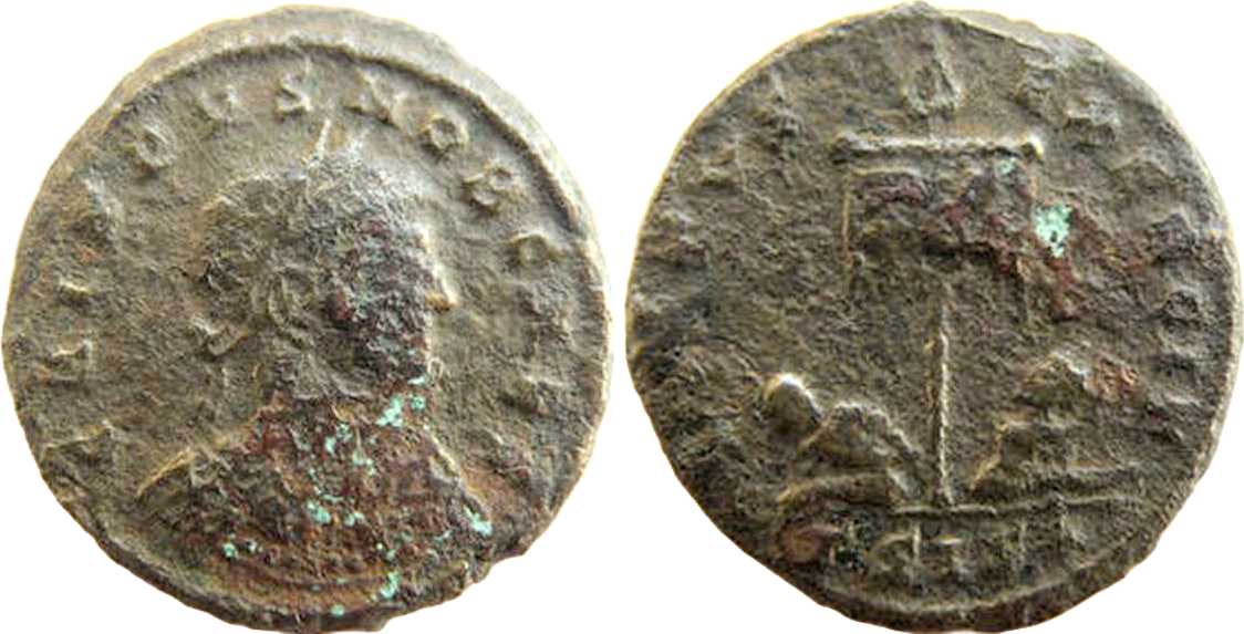 UNLISTED OBVERSE LEGEND. Specimen similar to SISCIA 112 except for shorter obv. legend not attested for this issue (p. 437). Note that it could be an ancient imitation. Otherwise, coin should be listed after SISCIA 113.