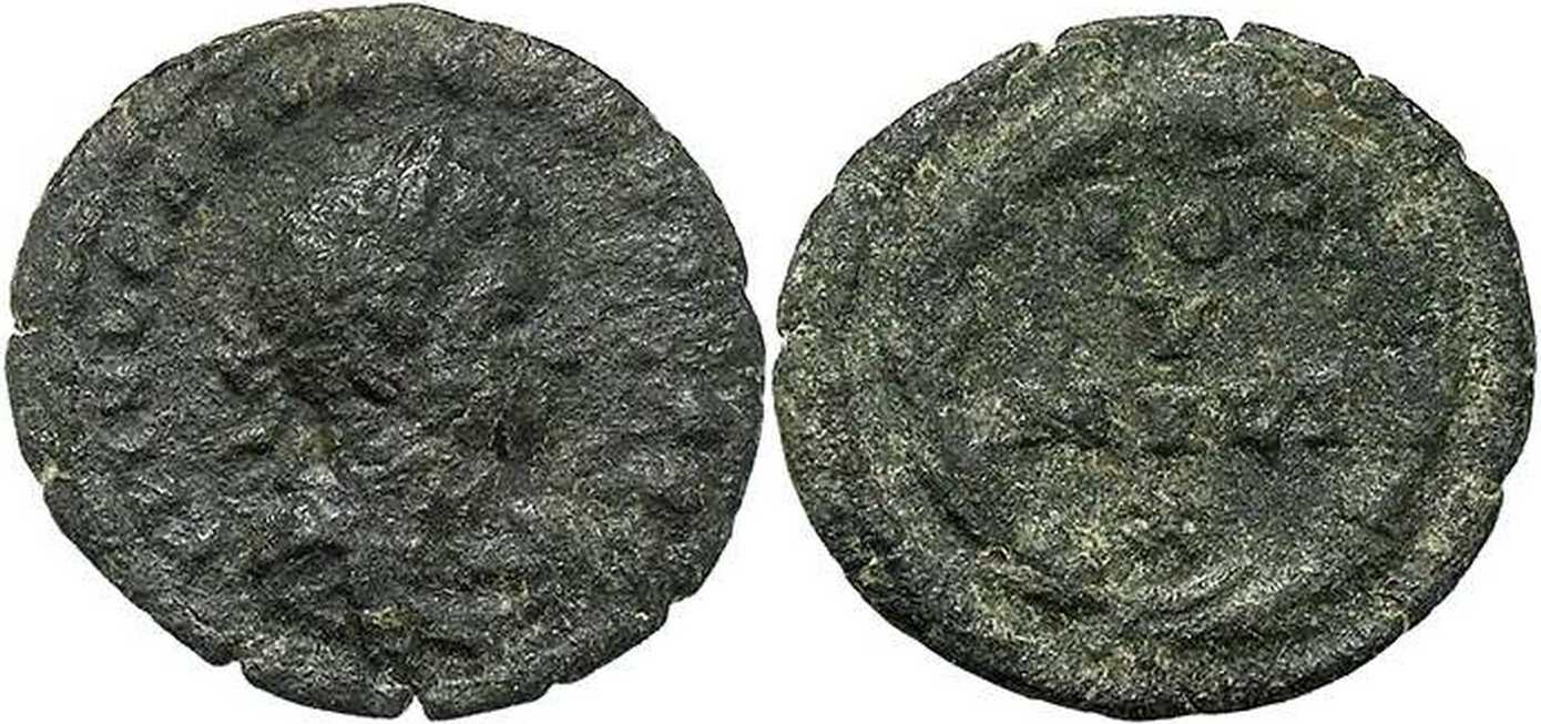 [CORRECTION]. Coin erroneously listed in RIC VII as THESSALONICA 57. Actually, all fractions listed in RIC as THESSALONICA 52-58 were minted in Trier. Listed in Zschucke BTP (p. 81, no. 14.28). Should be listed in RIC before TRIER 339.