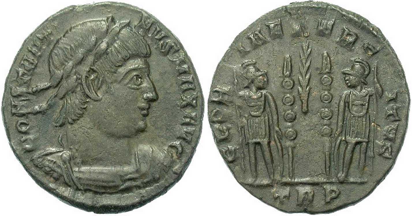 CONSTANTI-NVSMAXAVG [CONSTANTINVS MAX AVG]; bust r., laur., dr., cuir. [B4].