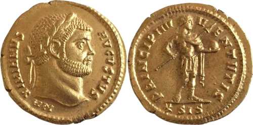 UNLISTED FOR RULER. RIC lists this issue only for Caesars: Constantius and Galerius (p. 457). Formally this coin may be regarded as rather impossible hybrid: obverse RIC V/2 CYZICUS 601 with reverse RIC VI SISCIA 18b. In fact, however, it is a modern forgery.