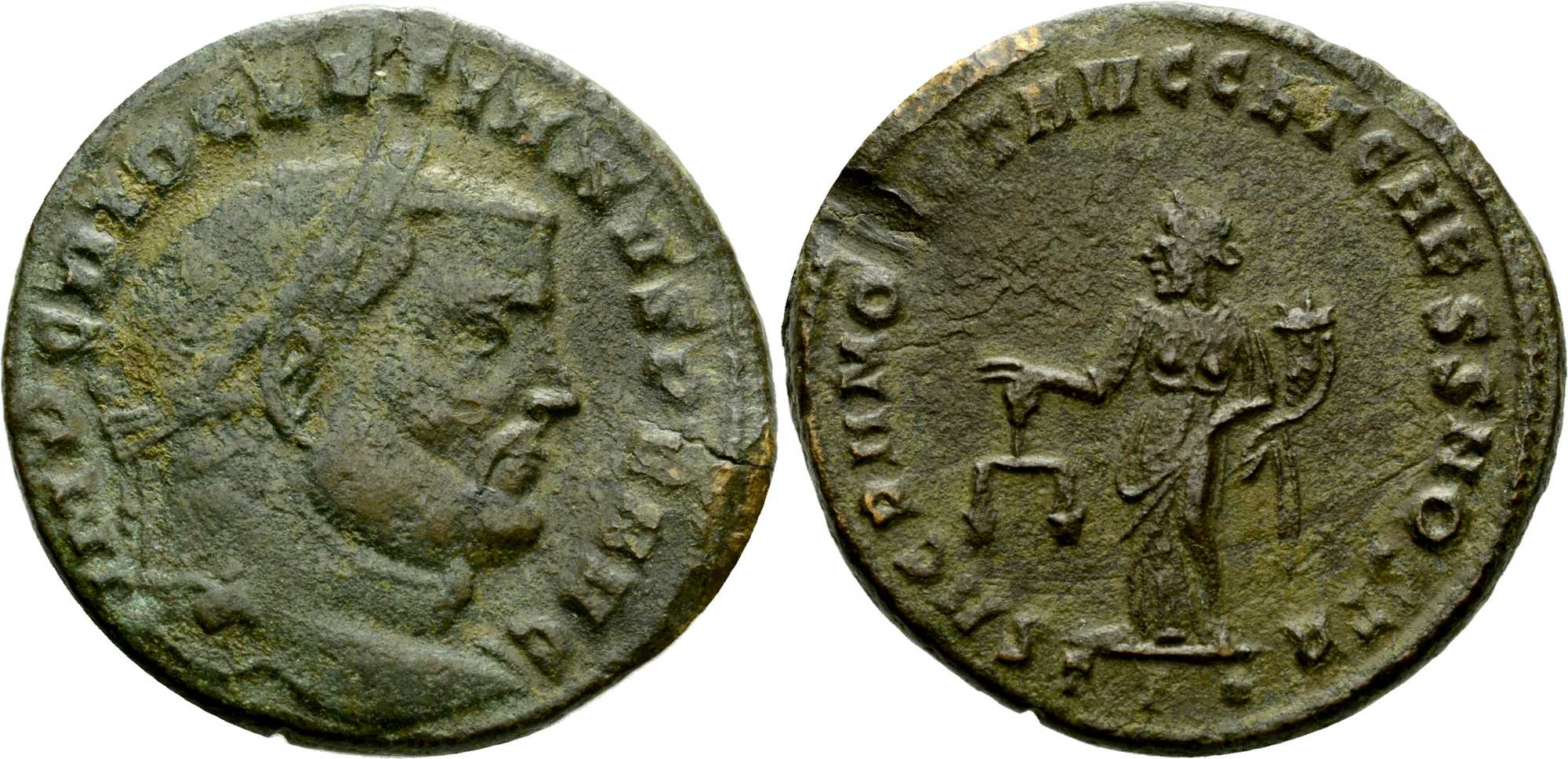 IMPCDIOCLETIANVSPFAVG [IMP C DIOCLETIANVS P F AVG]; head r., laur., with drapery on l. shoulder.