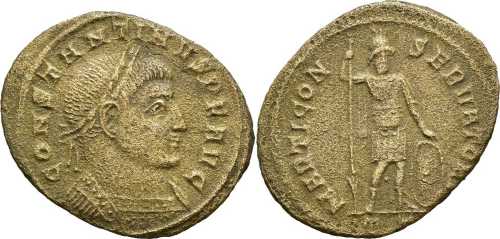 CONSTANTINVSPFAVG [CONSTANTINVS P F AVG]; bust r., laur., cuir.