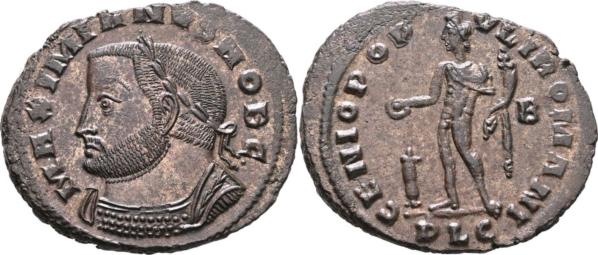 MAXIMIANVSNOB [MAXIMIANVS NOB]; bust l., laur., cuir.