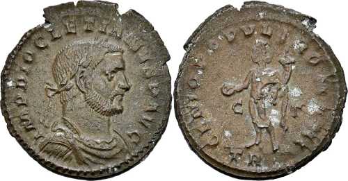 IMPDIOCLETIANVSPAVG [IMP DIOCLETIAVNS P AVG]; bust r., laur., dr., cuir. [D].