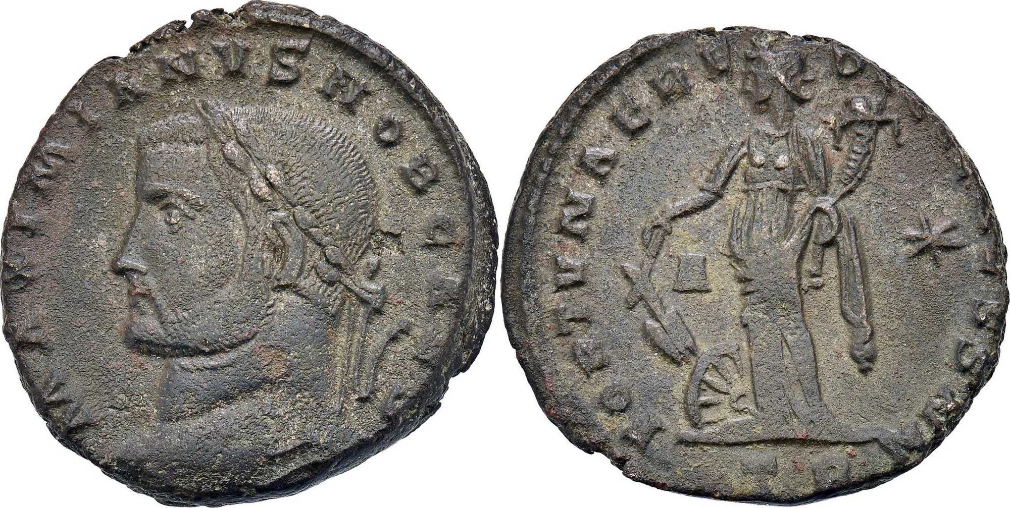MAXIMIANVSNOBCAES [MAXIMIANVS NOB CAES]; head l., laur. [M].