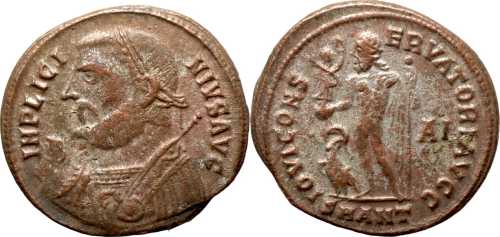 IMPLICI-NIVSAVG [IMP LICINIVS AVG]; bust l., laur., dr., globe, sceptre in l. hand, mappa in r. hand.