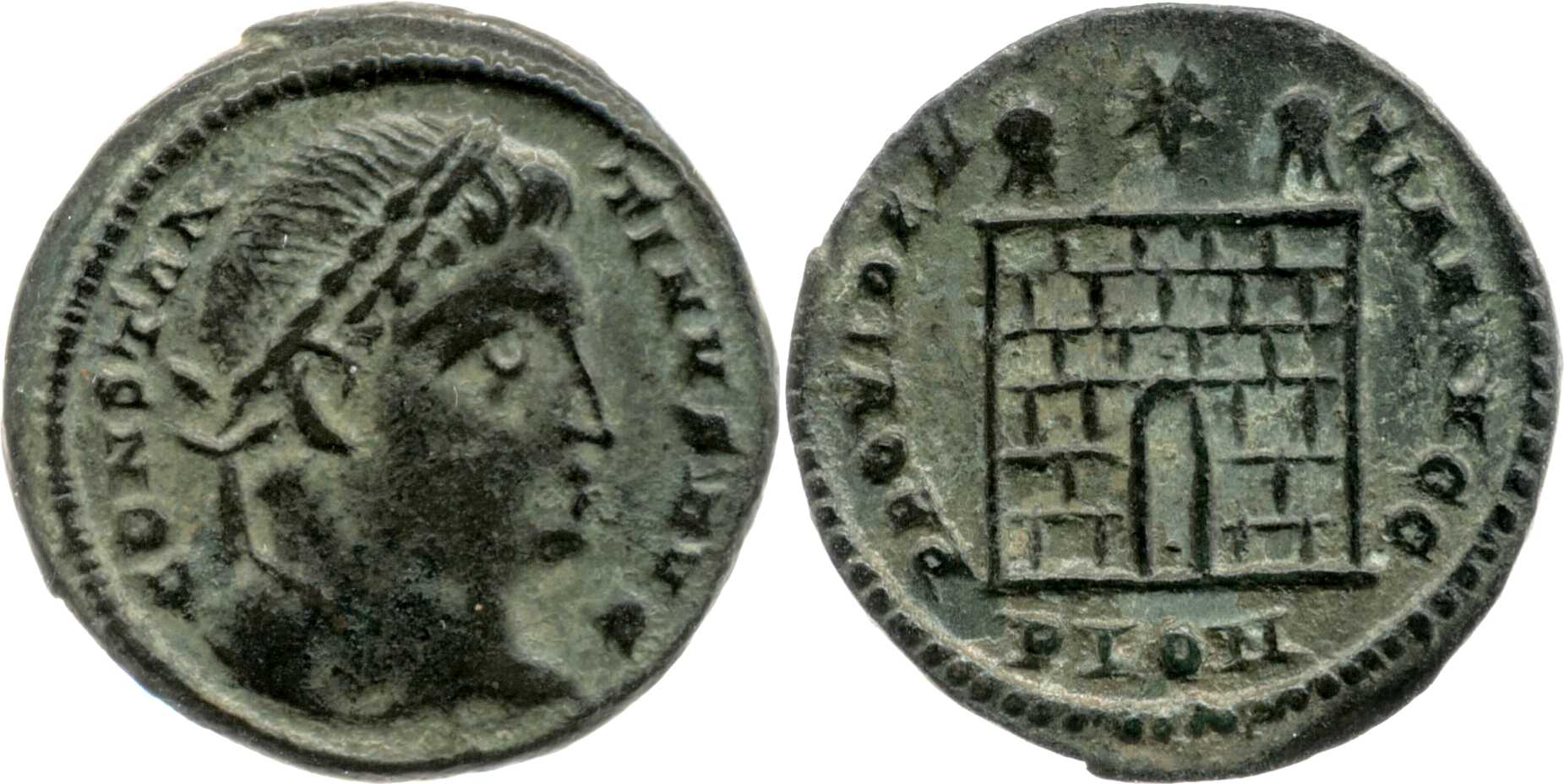 - from the Late Roman Bronze Coin Forum; posted by Victor; weight 3.30 g; diameter 19-21 mm; obv. legend break T-I [click for picture];
