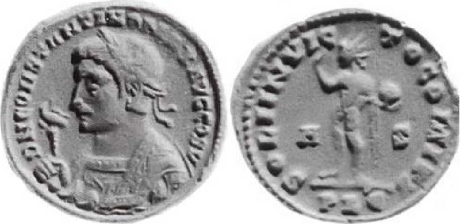 UNLISTED OBVERSE LEGEND. Not attested in RIC VII. On first glance this coin belongs to LYONS 51-62 issue (year 316) with Soli rev. It is not impossible, but there is a difficulty with placing fifth consulate of Constantine in year 316. See: Georges Gautier, "La mention du cinquième consulat de Constantin 1er dans le monnayage de l'atelier de Lyon en 316 ap. J.-C.: un anachronisme inexpliqué?", Schweizer Münzblätter 2015, no. 258, pp. 35-42. So maybe this type should be listed together with later issues minted after the reopening of Lyons mint (year 319; cf. LYONS 101-112 with the same m.m. and D N... obv. legends for Caesars). Not listed in Bastien Lyon (294-316) and Bastien Lyon - suppléments I-II. Should be listed in RIC before LYONS 51 or before LYONS 101.