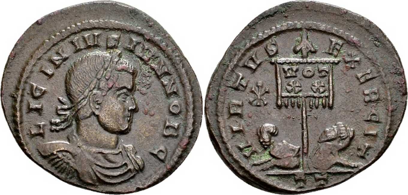 LICINIVSIVNNOBC [LICINIVS IVN NOB C]; bust r., laur., dr., cuir.