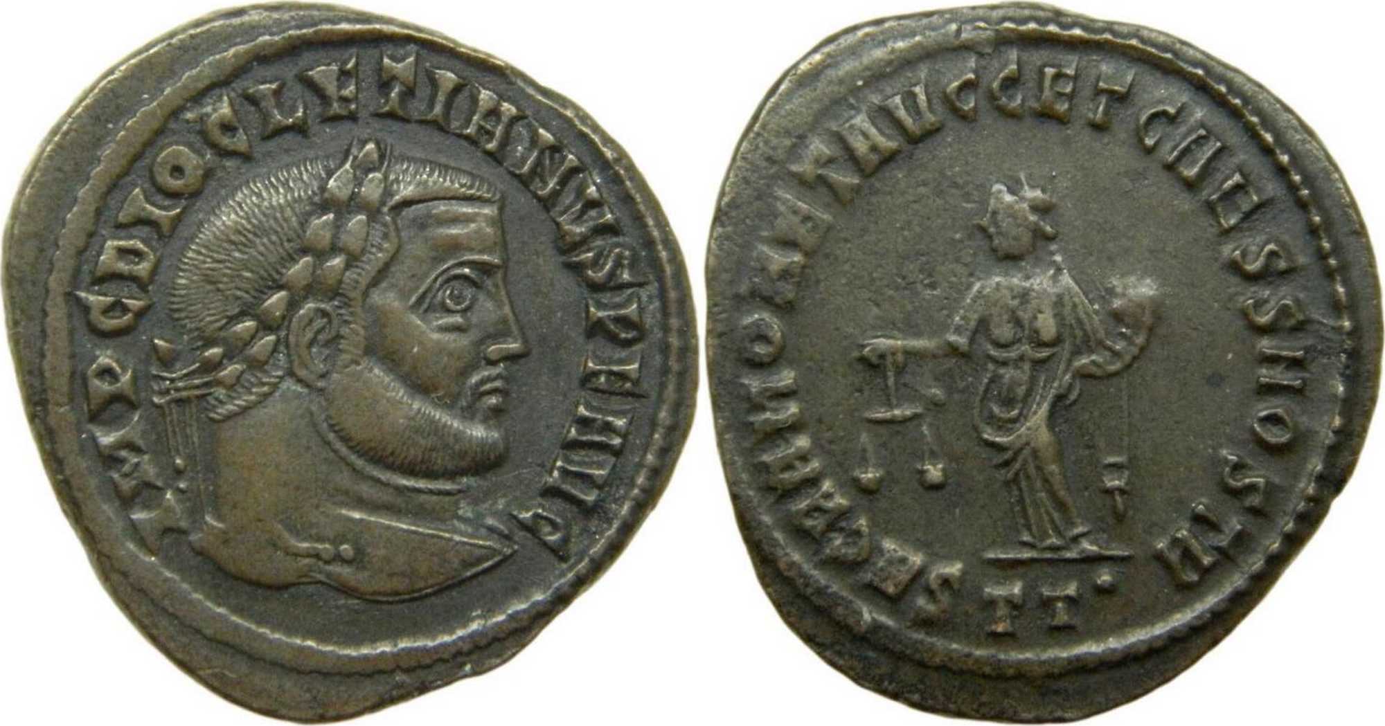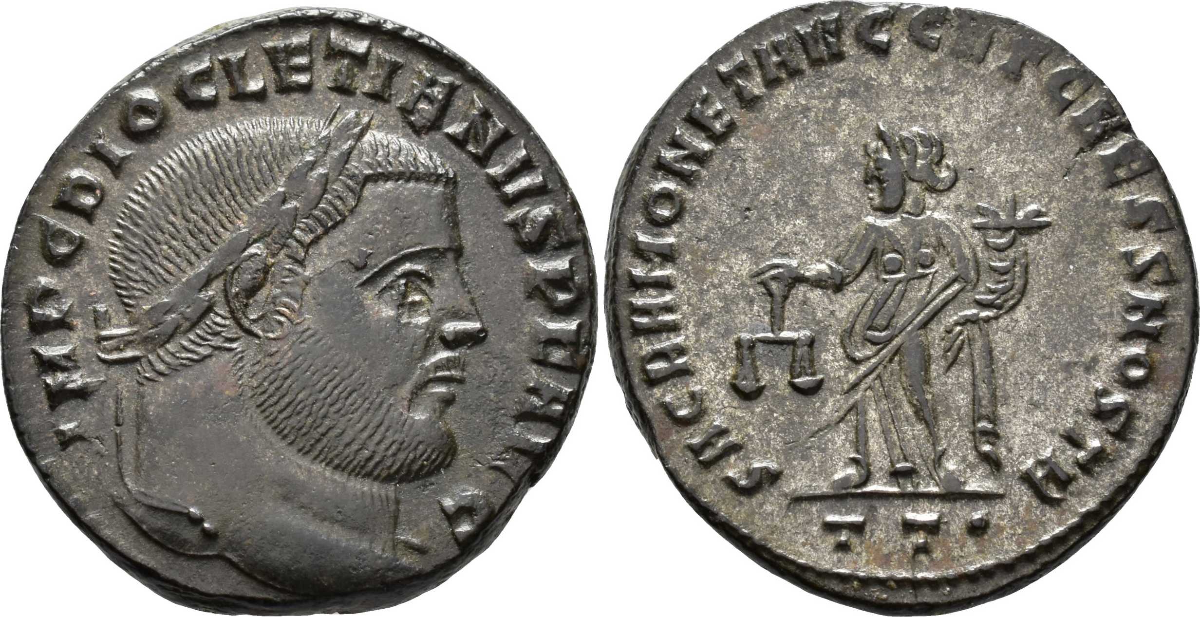 IMPCDIOCLETIANVSPFAVG [IMP C DIOCLETIANVS P F AVG]; head r., laur., with drapery on l. shoulder.