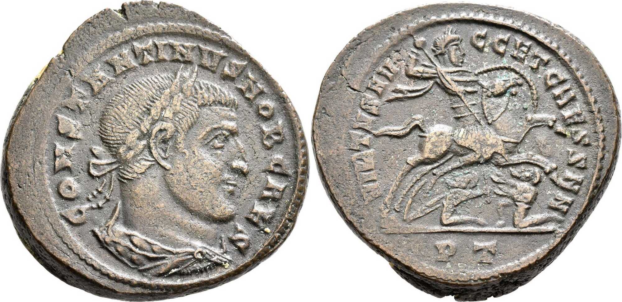 RIC VI, TREVERI 213b, GALERIUS MAXIMIAN, DOUBLE FOLLIS, MINT ERROR