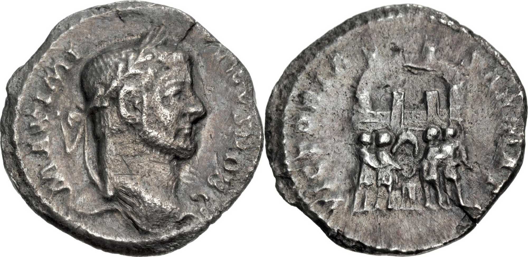 MAXIMI-ANVSNOBC [MAXIMIANVS NOB C]; head r., laur.