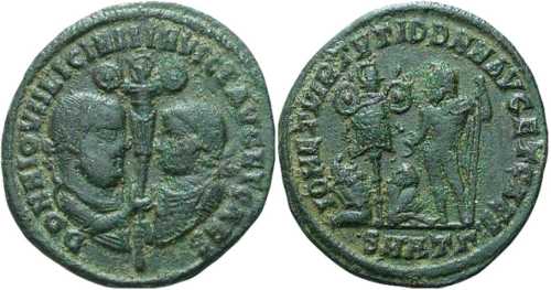 ANTIOCH [before 34], LICINIUS I & LICINIUS II, UNLISTED ISSUE, ENGRAVER'S ERROR