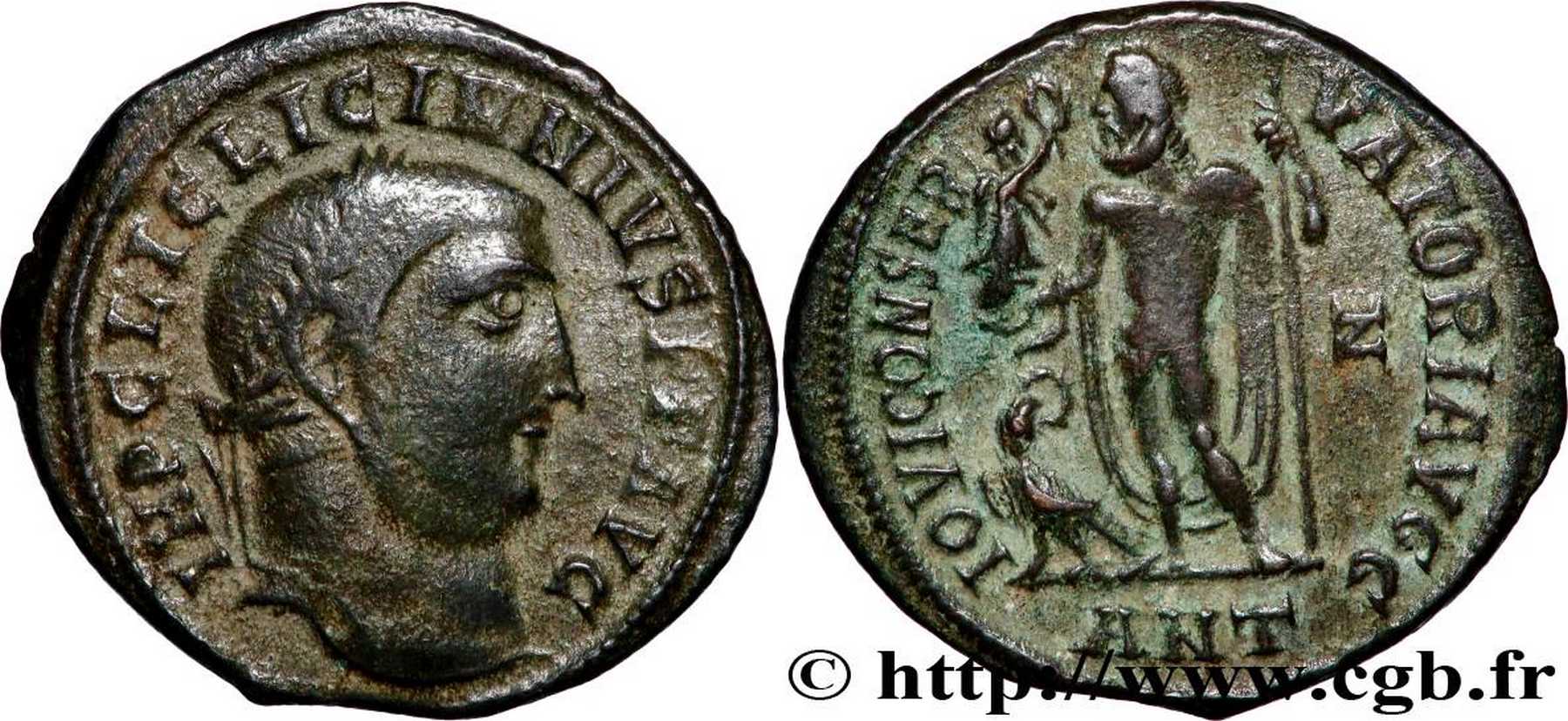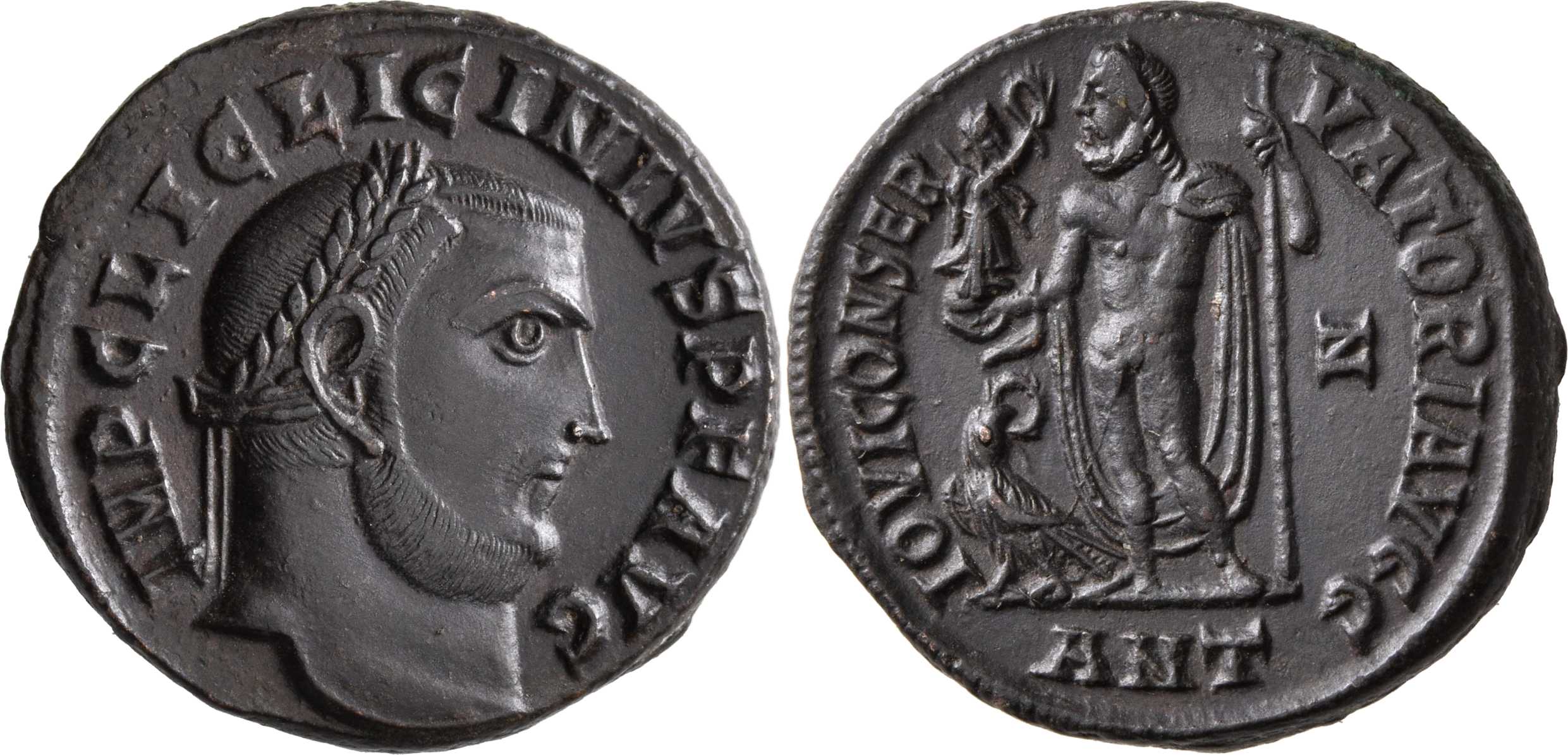 IOVICONSER-VATORIAVGG [IOVI CONSERVATORI AVGG]; Jupiter stg. l., chlamys spread behind, leaning on sceptre, Victory on globe in r. hand; eagle with wreath to l. on ground. Z in right field. ANT in exergue.