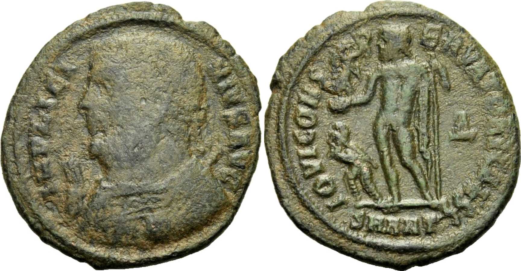 IMPLICI-NIVSAVG [IMP LICINIVS AVG]; bust l., laur., dr., globe, sceptre in l. hand, mappa in r. hand [ANTIOCH 27].