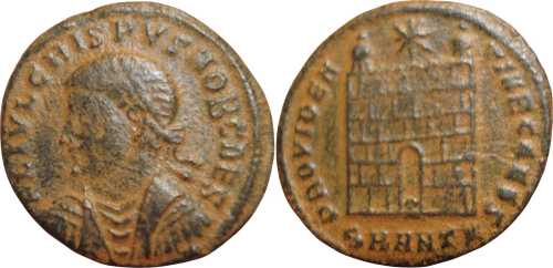 RIC VII, ANTIOCH 72, CRISPUS, UNLISTED OFFICINA A, MINTMARK VARIETY