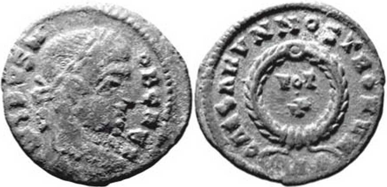 ARLES [after 251], CRISPUS, UNLISTED ISSUE [m.m. PAR], OFFICINA P [IRREGULAR COIN]
