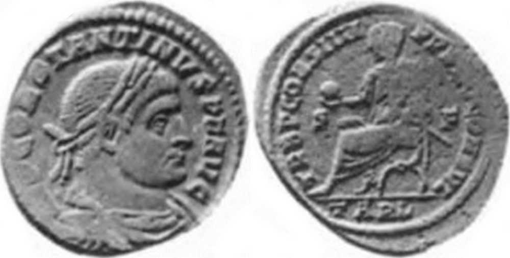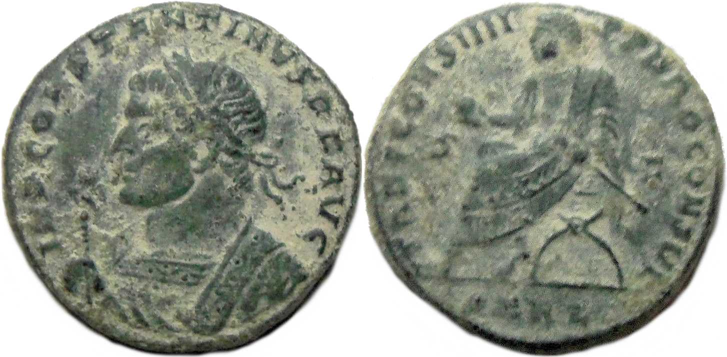 IMPCONSTANTINVSPFAVG [IMP CONSTANTINVS P F AVG]; bust l., laur., wearing trabea, eagle-tipped sceptre in r. hand [K3 l.].