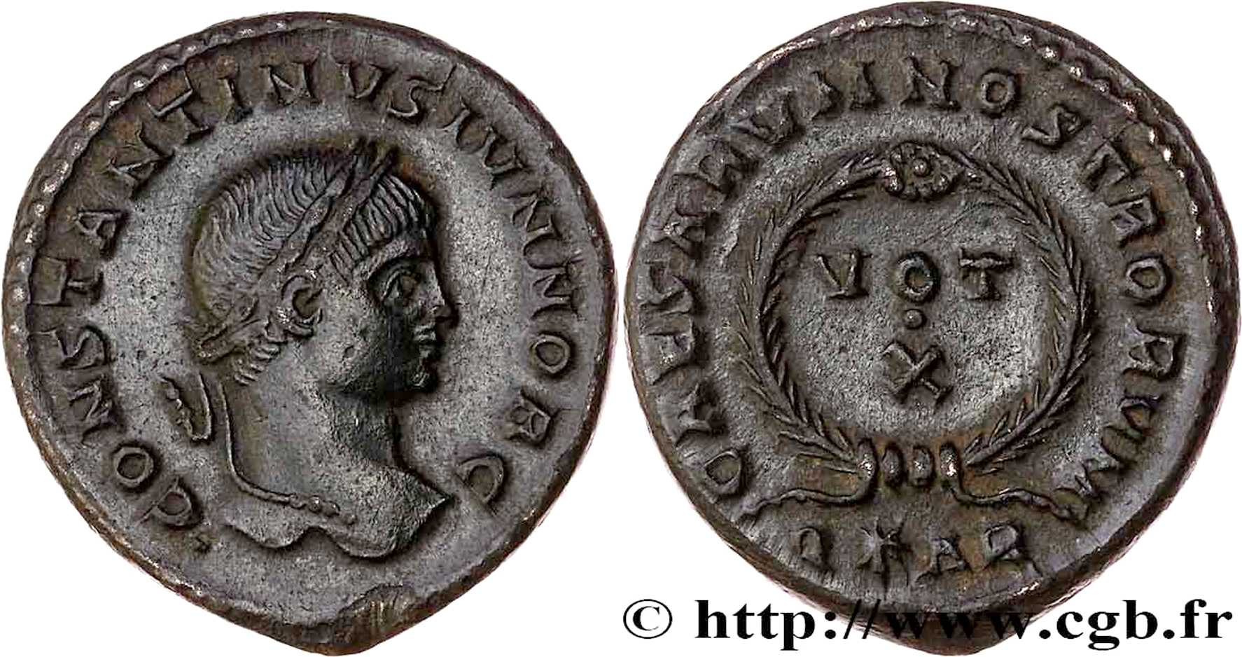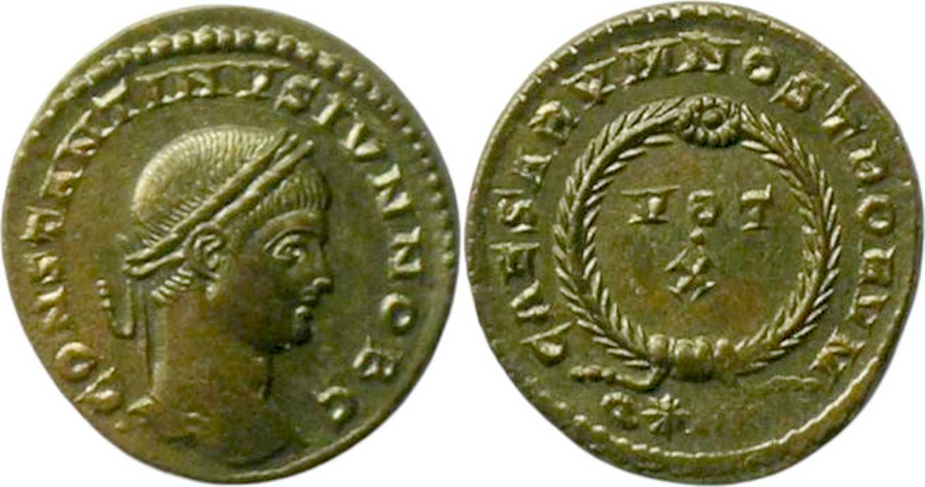 CONSTANTINVSIVNNOBC [CONSTANTINVS IVN NOB C]; head r., laur.
