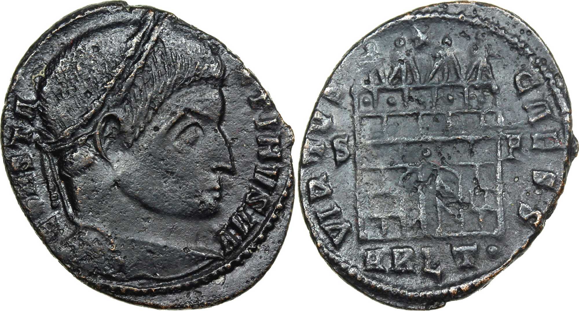 CONSTA-NTINVSAV [CONSTANTINVS AV (sic!)]; head r., laur. [ARLES 313].