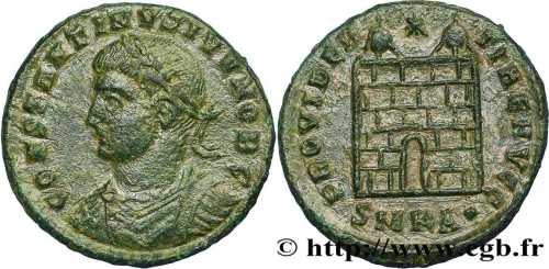PROVIDEN-TIAEAVGG [PROVIDENTIAE AVGG]; camp gate, two turrets, no doors, star above, varying number of stone layers. SMKA in exergue [CYZICUS 34].