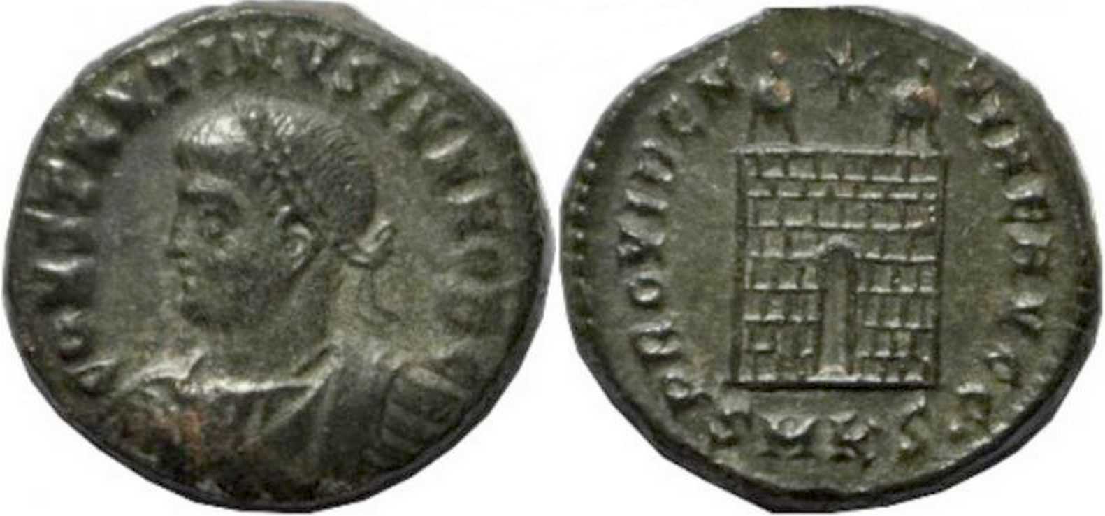 PROVIDEN-TIAEAVGG [PROVIDENTIAE AVGG]; camp gate, two turrets, no doors, star above, varying number of stone layers. SMKS in exergue [CYZICUS 34].