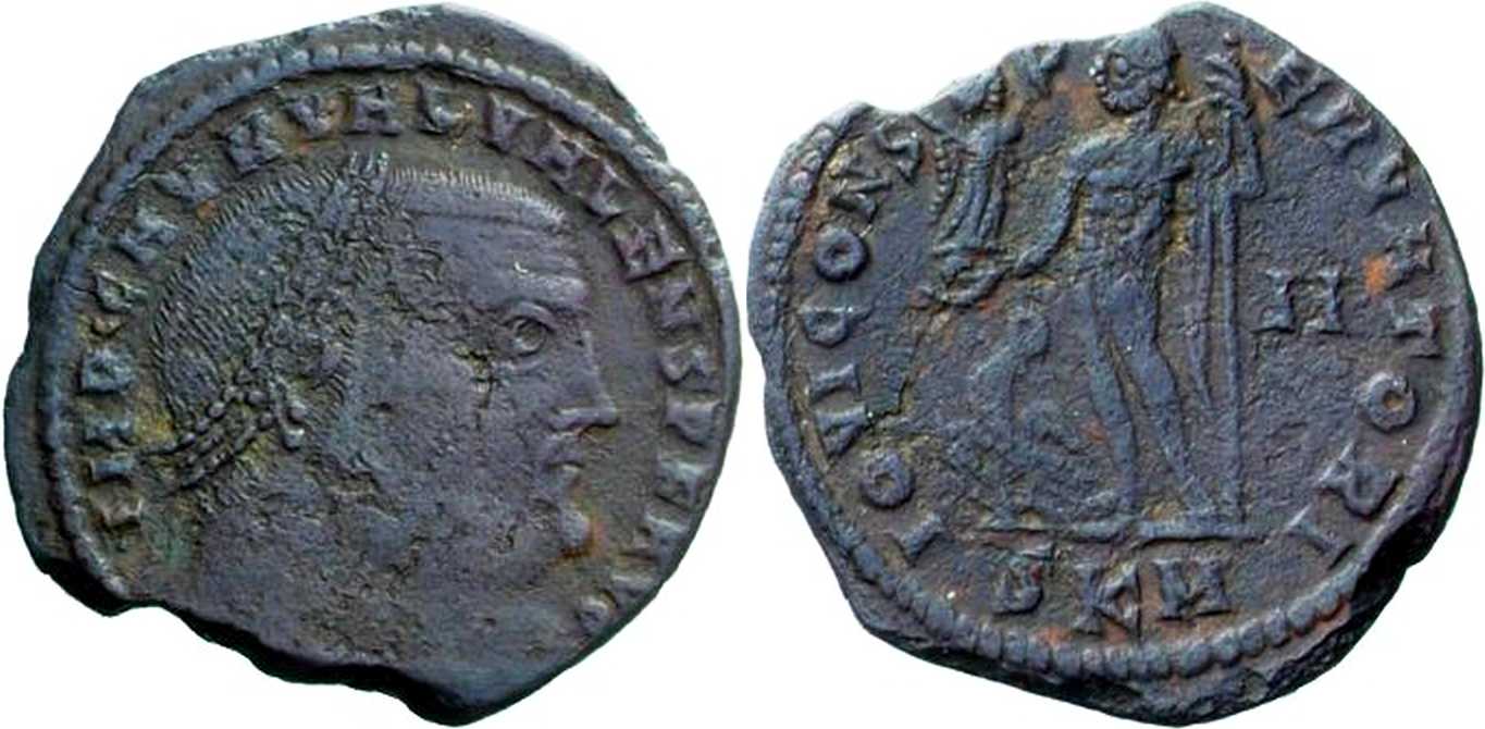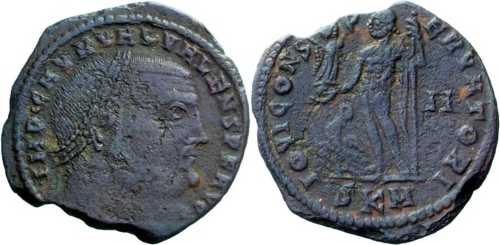 IOVICONS-ERVATORI [IOVI CONSERVATORI]; Jupiter stg. l., chlamys across l. shoulder, holding sceptre, Victory on globe in r. hand; eagle with wreath to l. on ground. II in right field. SKM in exergue.