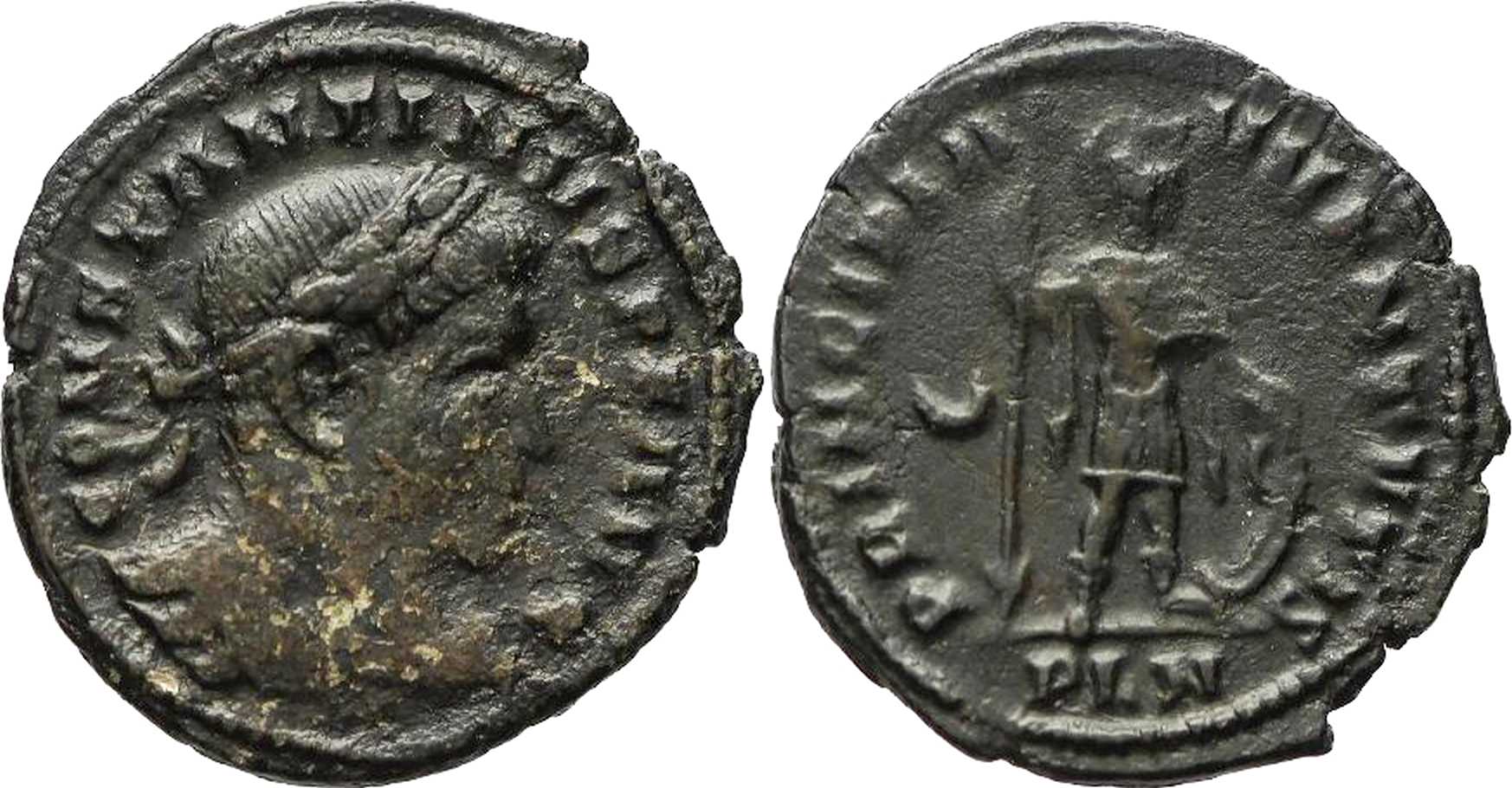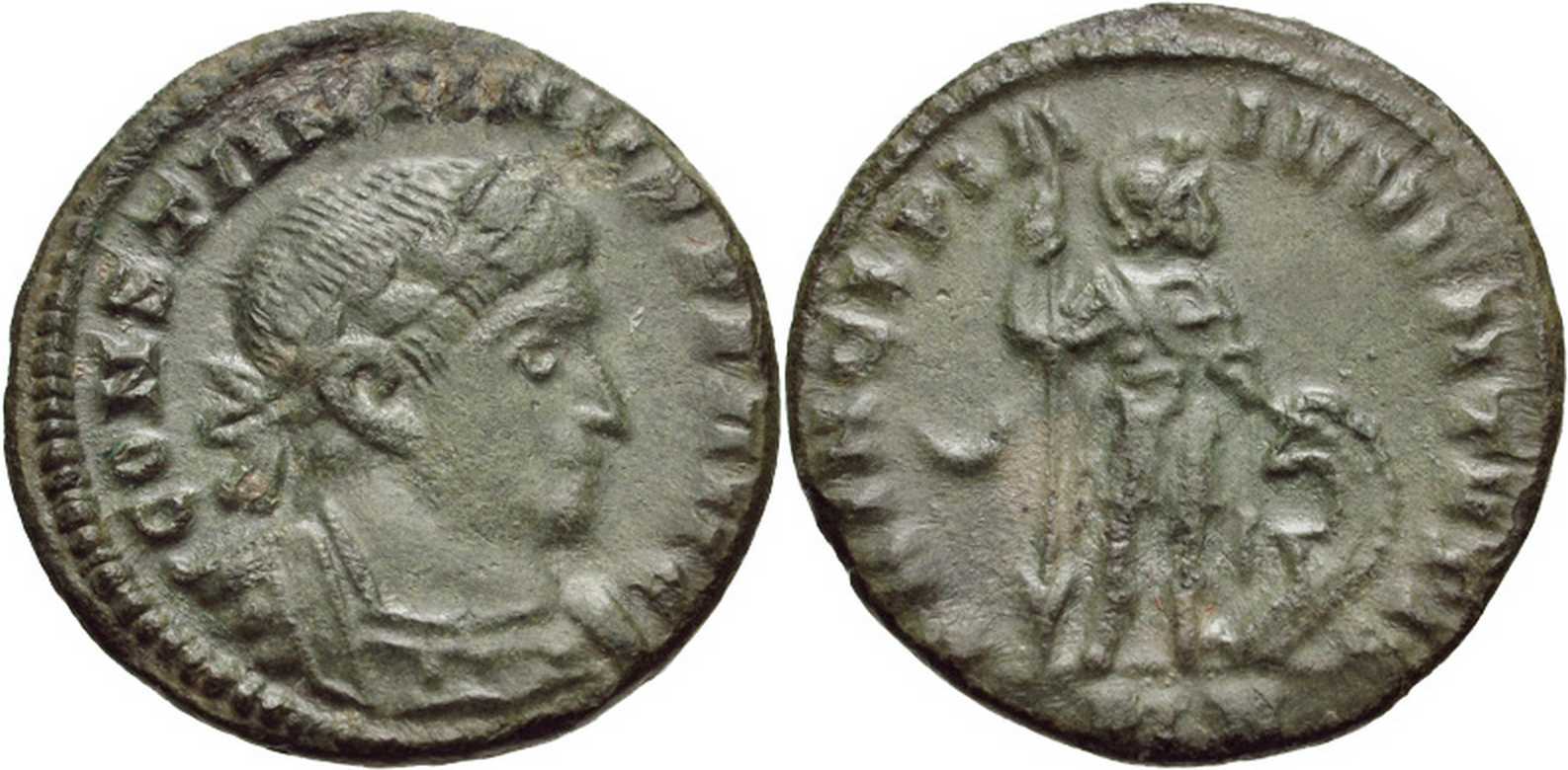 CONSTANTINVSPFAVG [CONSTANTINVS P F AVG]; bust r., laur., cuir.