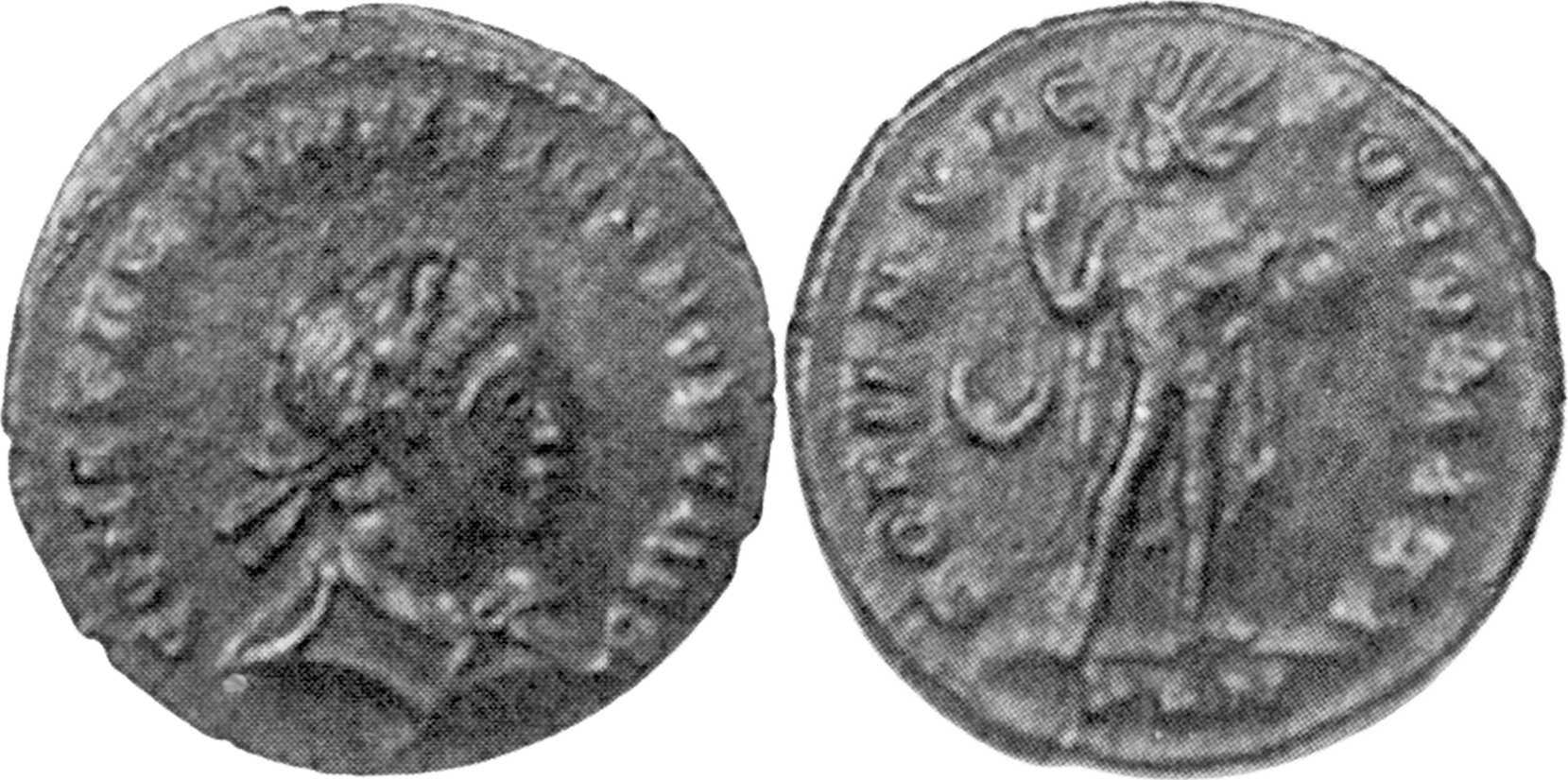 UNLISTED REVERSE TYPE. RIC lists for this issue only Sol stg. l. with chlamys across l. shoulder (p. 105). Listed in Cloke-Toone (8.11.044). Should be listed in RIC after LONDON 147.