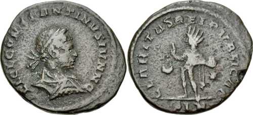 UNLISTED FOR RULER. RIC list this rev. only for Constantine I (p. 105). Not listed in Cloke-Toone. Should be listed in RIC after LONDON 148.