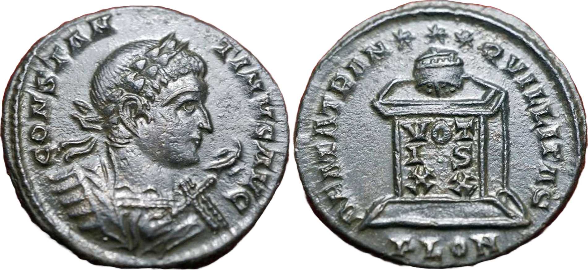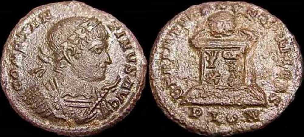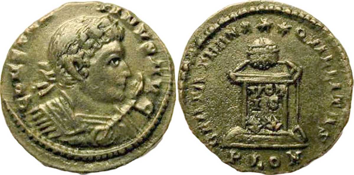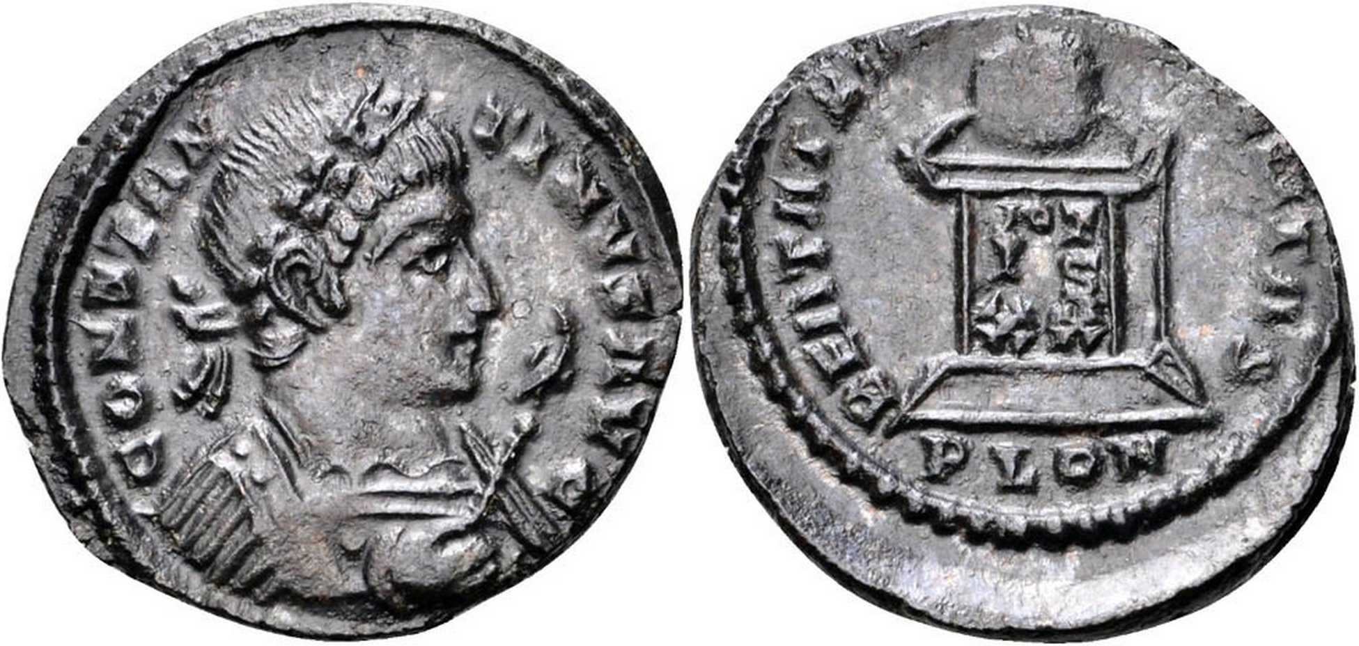 - from FORVM ANCIENT COINS; weight 2.72 g; diameter 19 mm; obv. legend break T-I; rev. legend break N-Q [click for picture];