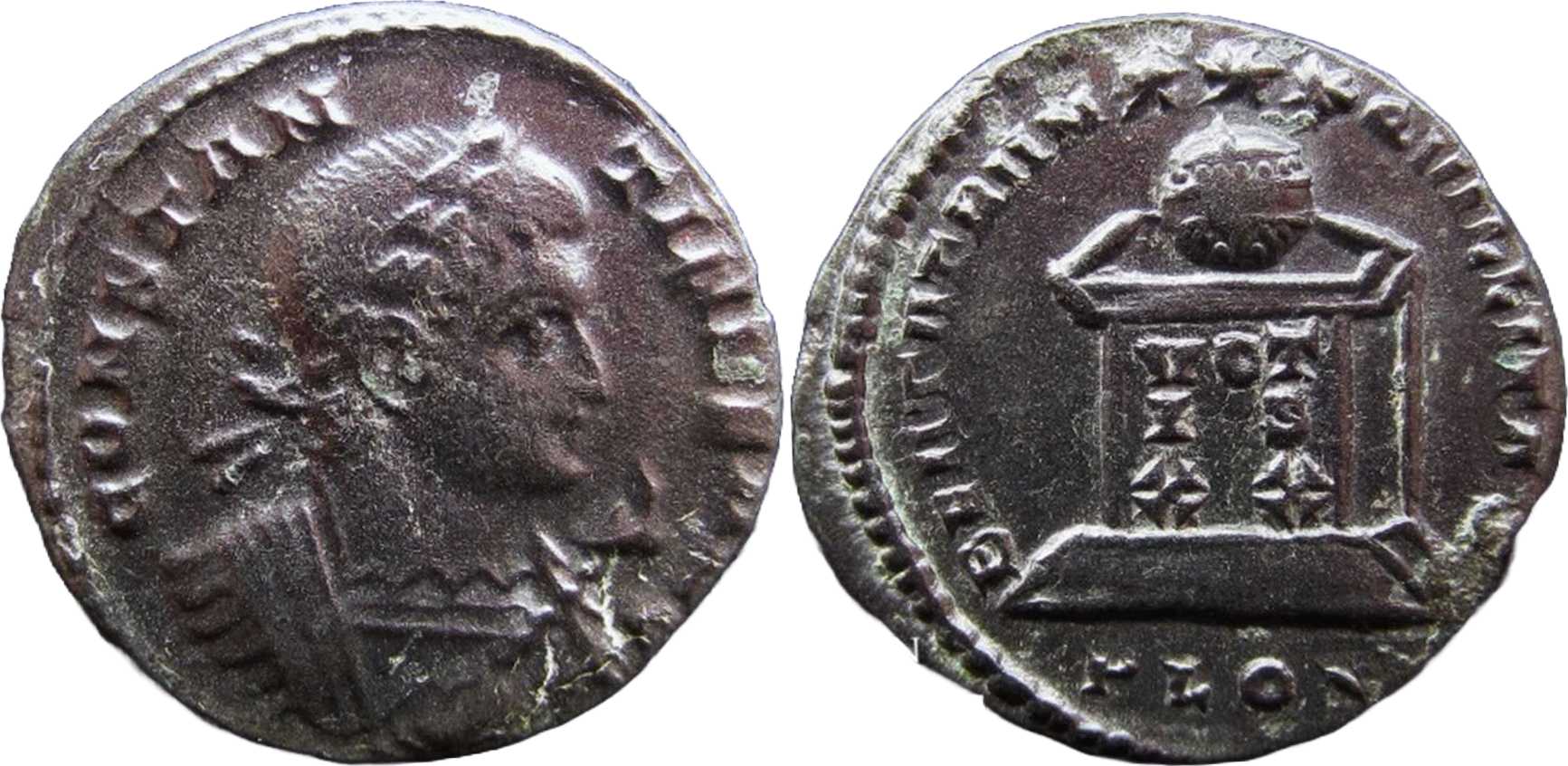 - from Lee Toone: The London Mint of Constantine; plate coin in Cloke-Toone; sold on eBay in July 2022 for GBP 90; weight 2.86 g; diameter 18.84-19.00 mm [click for picture];