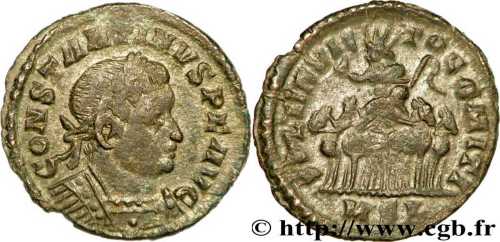 CONSTANTINVSPFAVG [CONSTANTINVS P F AVG] [1c]; bust r., laur., cuir.