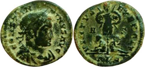 UNLISTED BUST TYPE - B4. Not attested for obv. legend 1 (p. 129). Not listed in Bastien Lyon (318-337) and Bastien Lyon - suppléments I-II. Should be listed in RIC after LYONS 101.