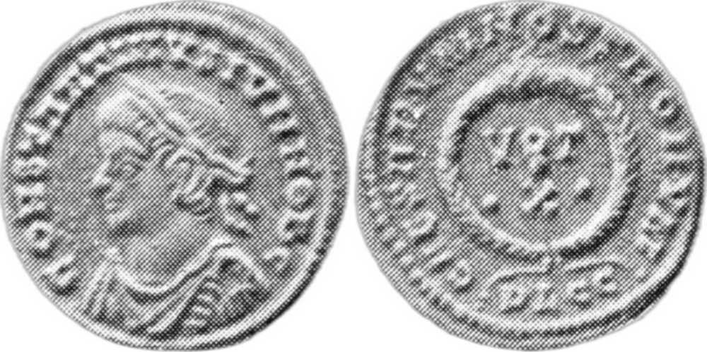 - from Bastien Lyon (318-337) (plate XII, no. 181i); weight 3.05 g [click for picture];