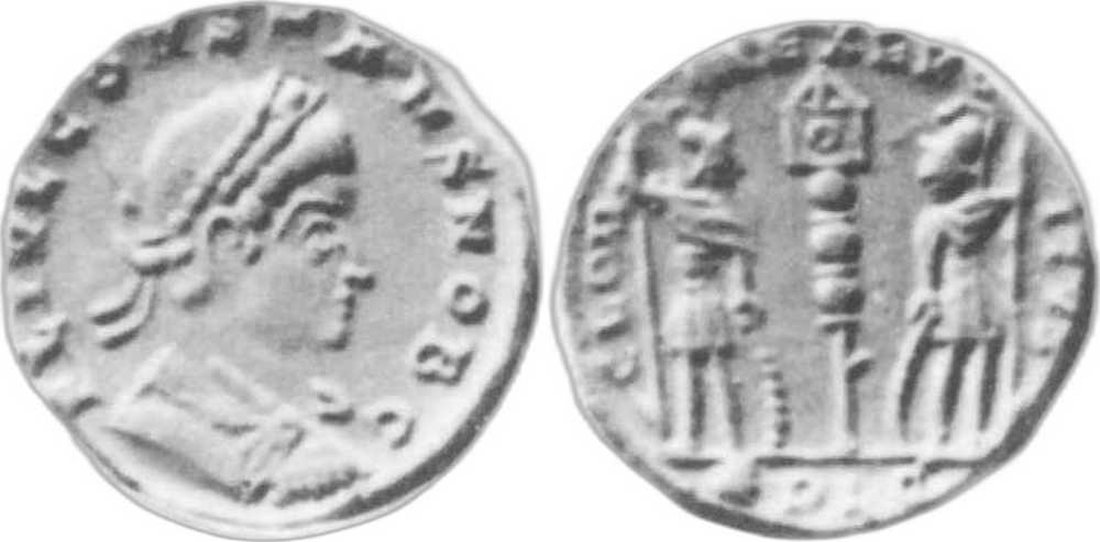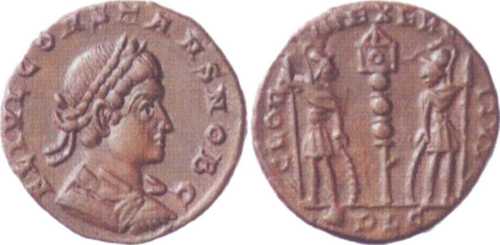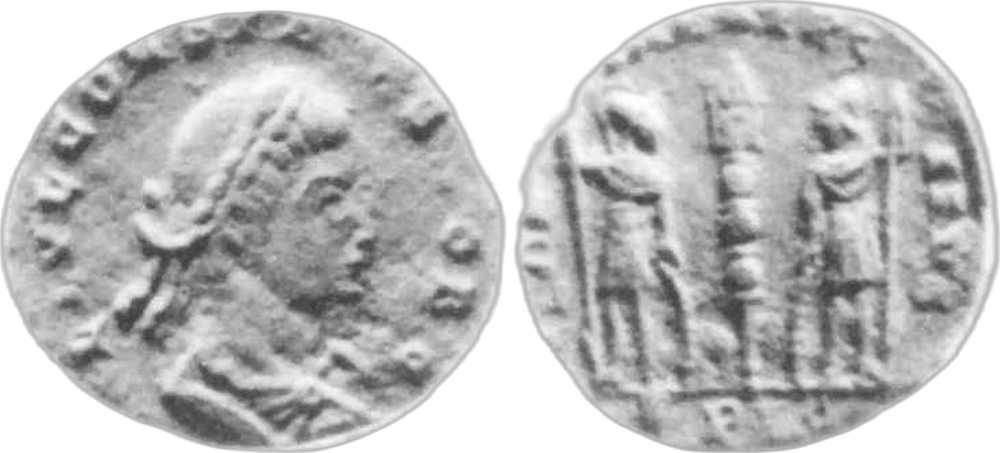 - from the Late Roman Bronze Coin Forum; posted by Victor. Collection Claude Pisana no. 726; weight 1.60 g; diameter 15.4 mm [click for picture];