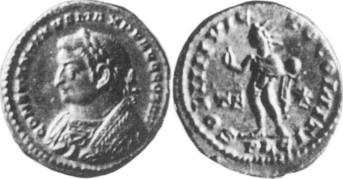 CONSTANTINVS-MAXPFAVGCOSIIII [CONSTANTINVS MAX P F AVG COS IIII]; bust l., laur., wearing trabea [K1 l.].