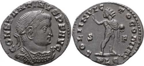 CONSTANTINVSPFAVG [CONSTANTINVS P F AVG]; bust r., laur., cuir. [B5].