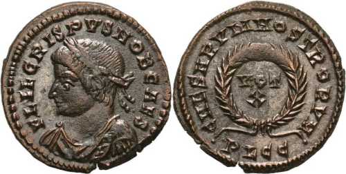 RIC VII, LYONS 216, CRISPUS, OBVERSE LEGEND VARIETY, ENGRAVER'S ERROR