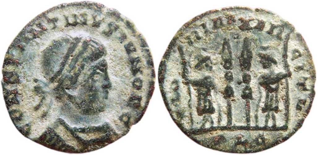 RIC VII, LYONS 238, CONSTANTINE II, ENGRAVER'S ERROR [IRREGULAR COIN]