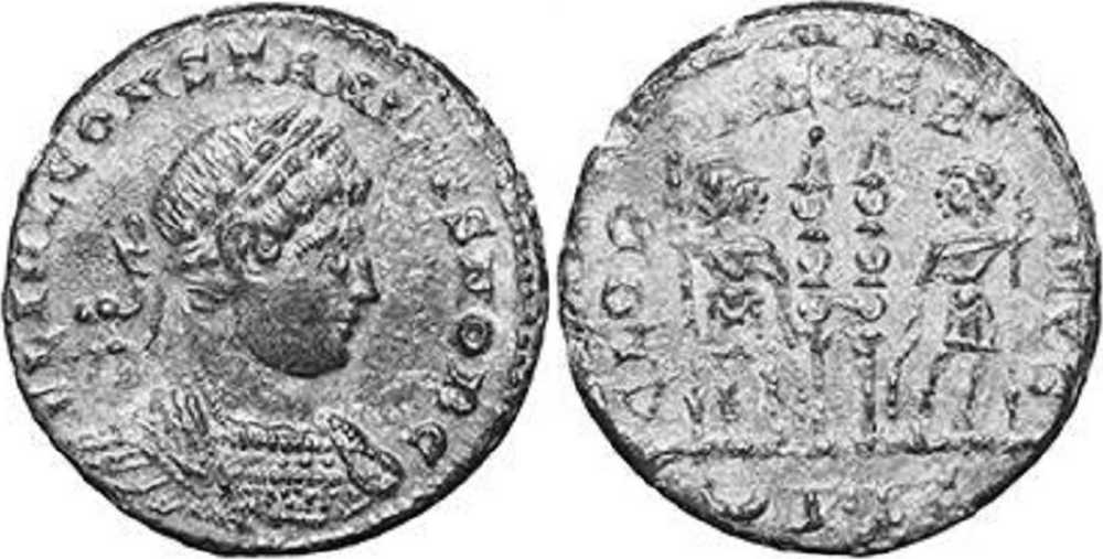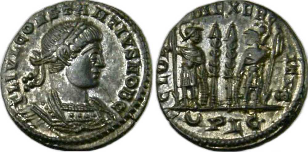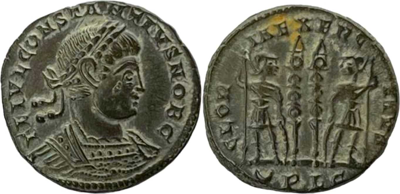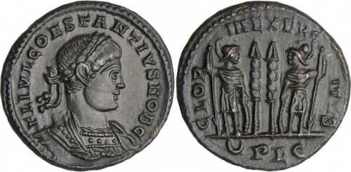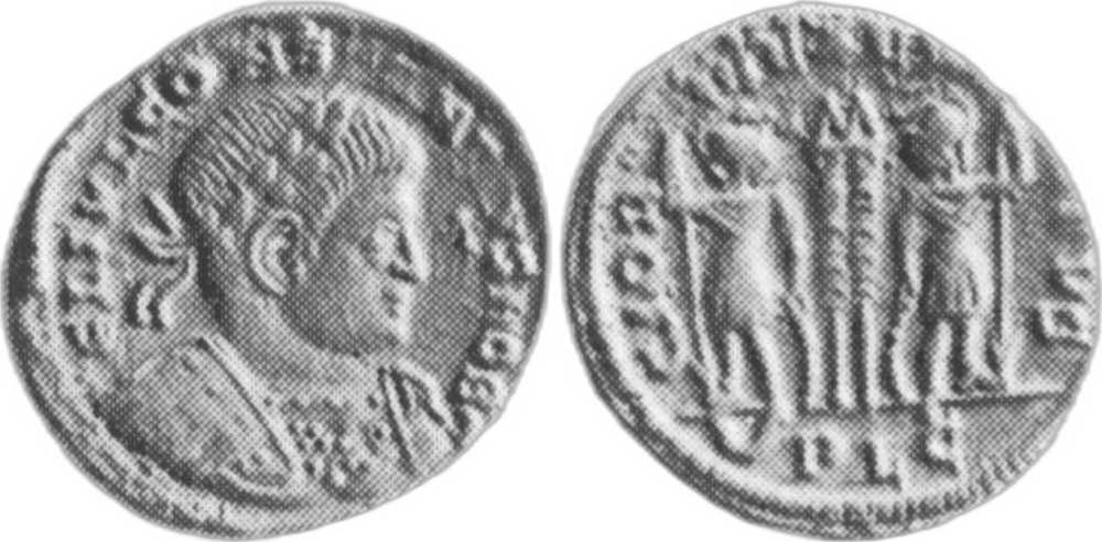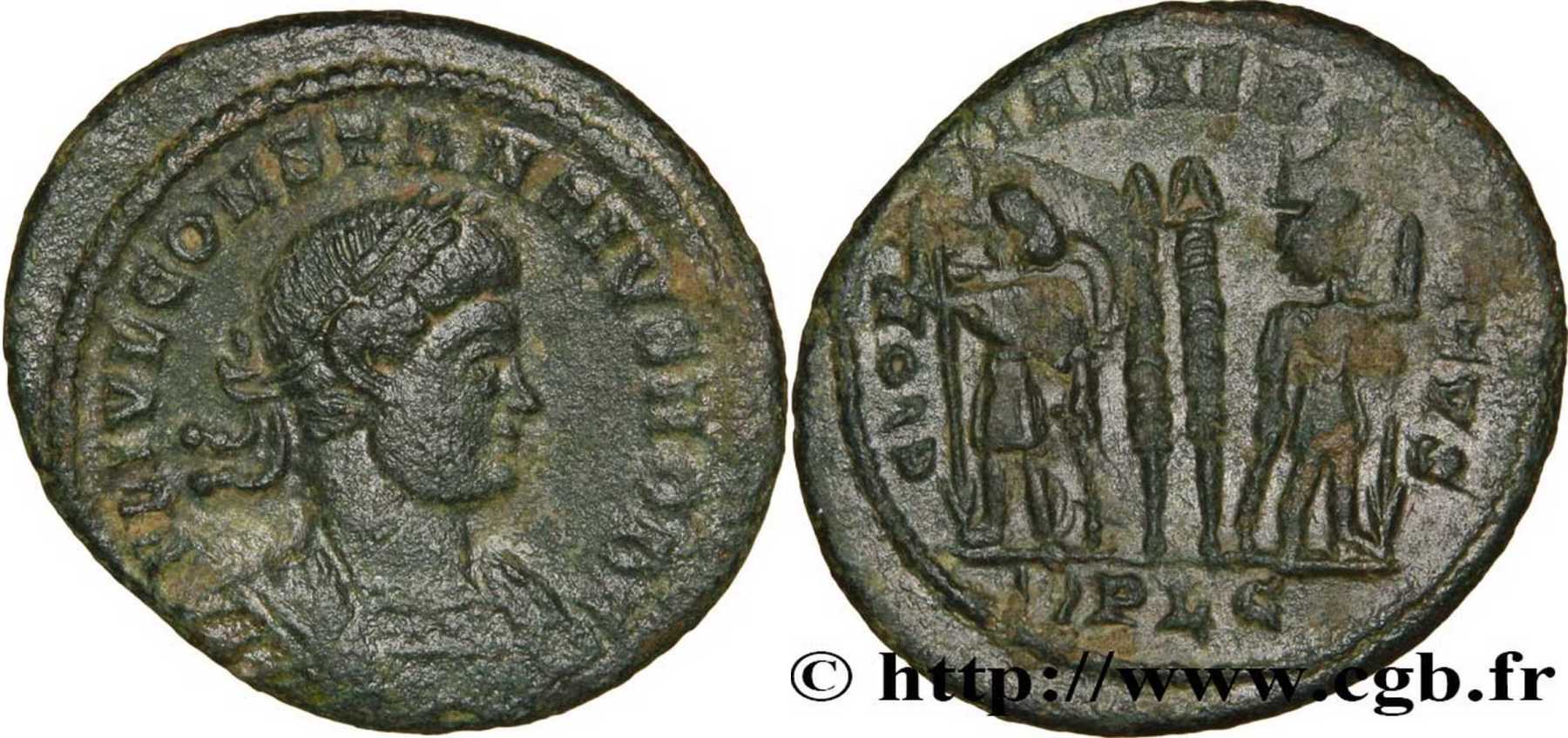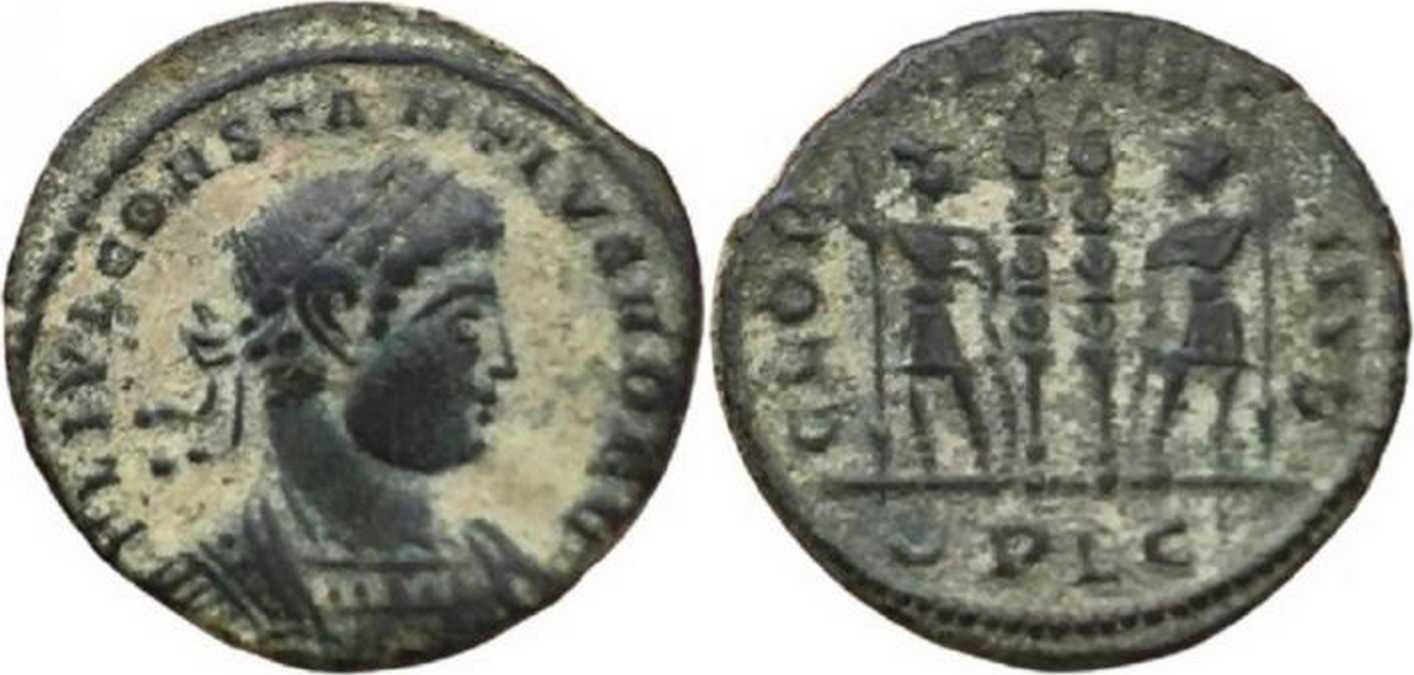 - from Bastien Lyon (318-337) (plate XIV, no. 210a); weight 1.99 g [click for picture];