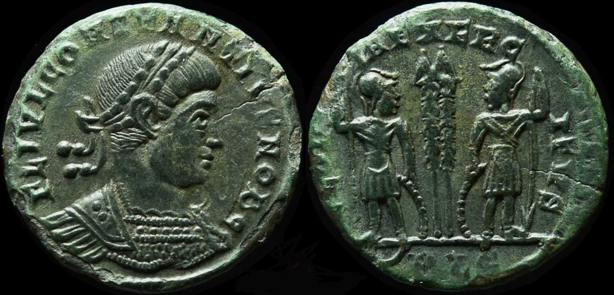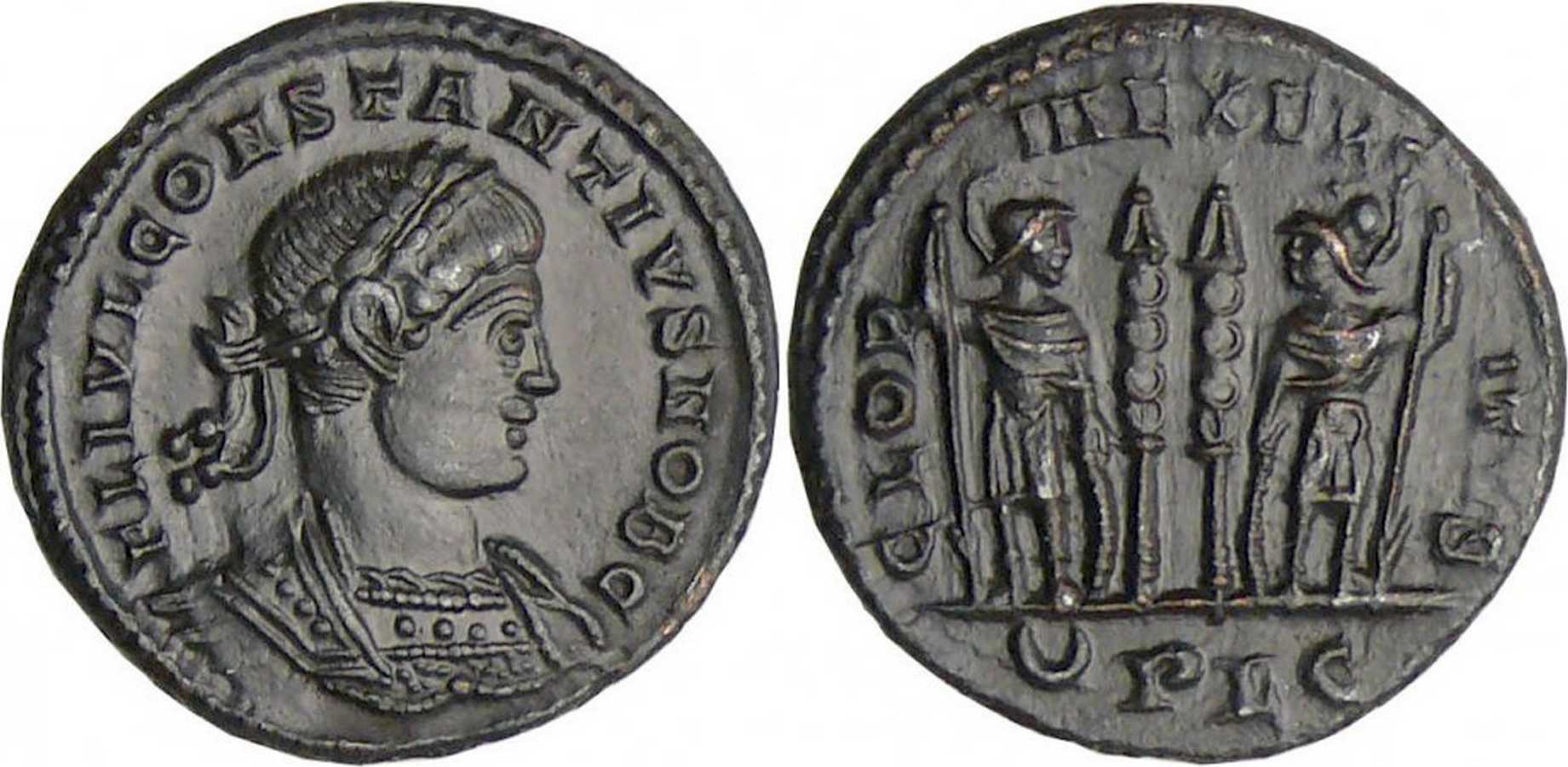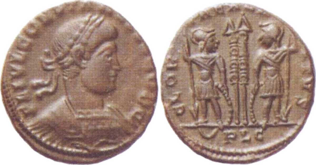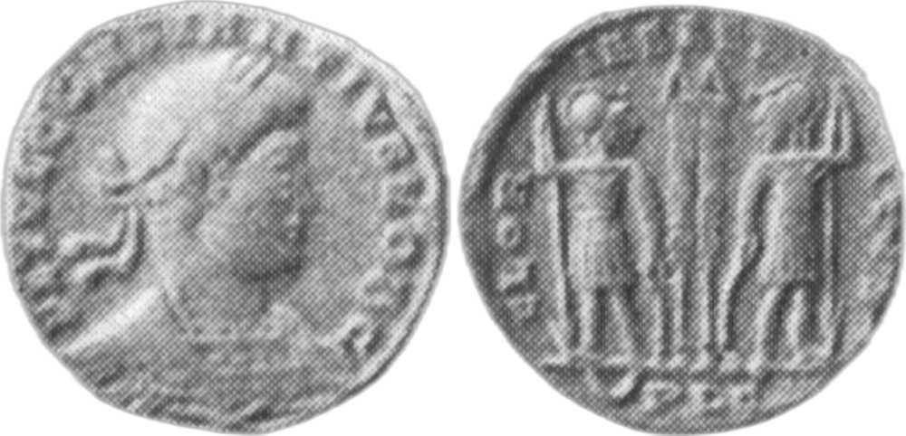 - from Bastien Lyon (318-337) (plate XIV, no. 210b); weight 2.61 g [click for picture];