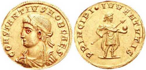 CONSTANTIVSNOBCAES [CONSTANTIVS NOB CAES]; bust l., plain diadem, dr., cuir.
