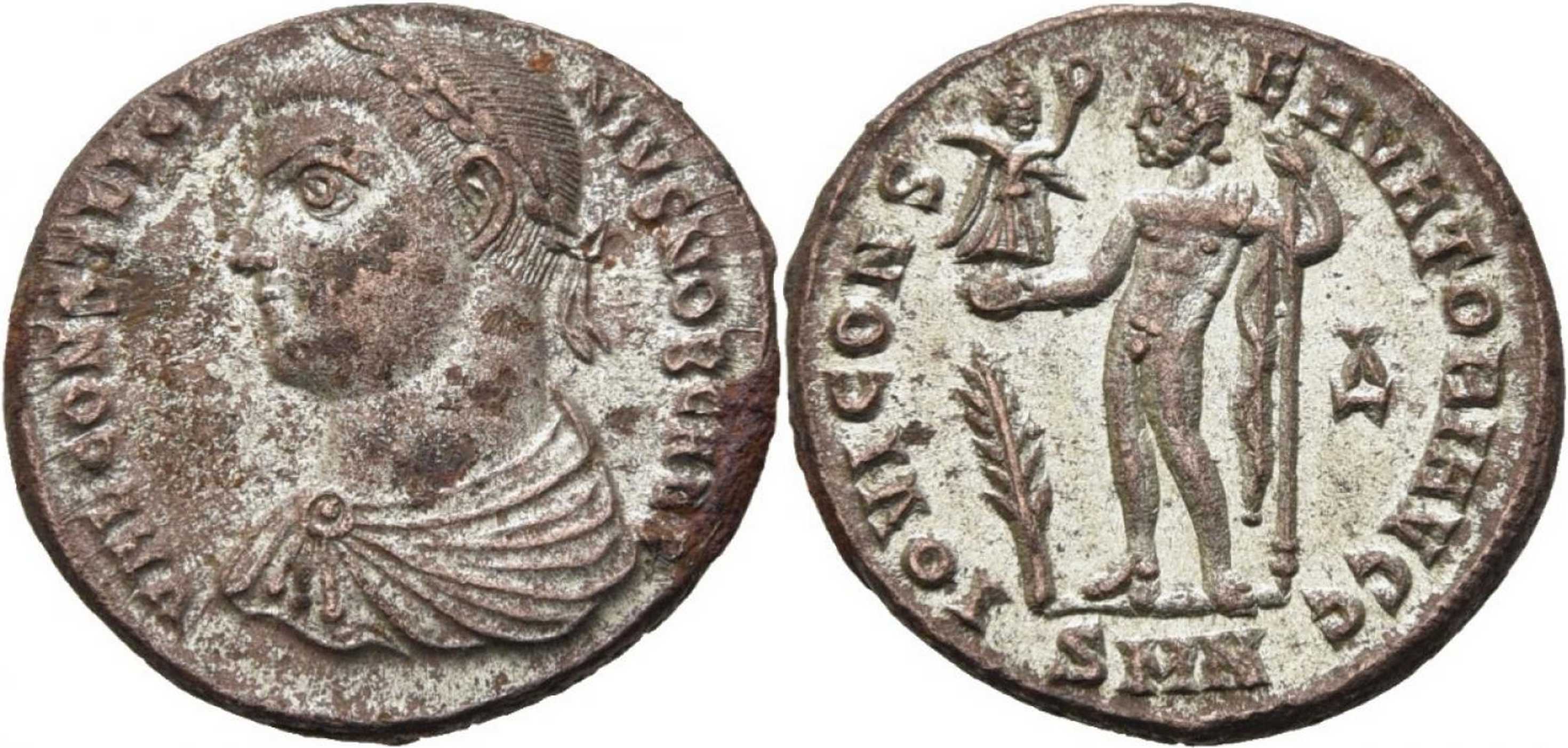 VALCONSTLICI-NIVSNOBCAES [VAL CONST LICINIVS NOB CAES]; bust l., laur., dr., cuir., seen from back.